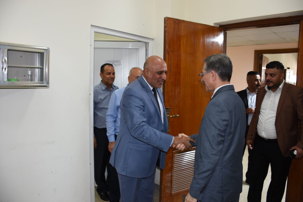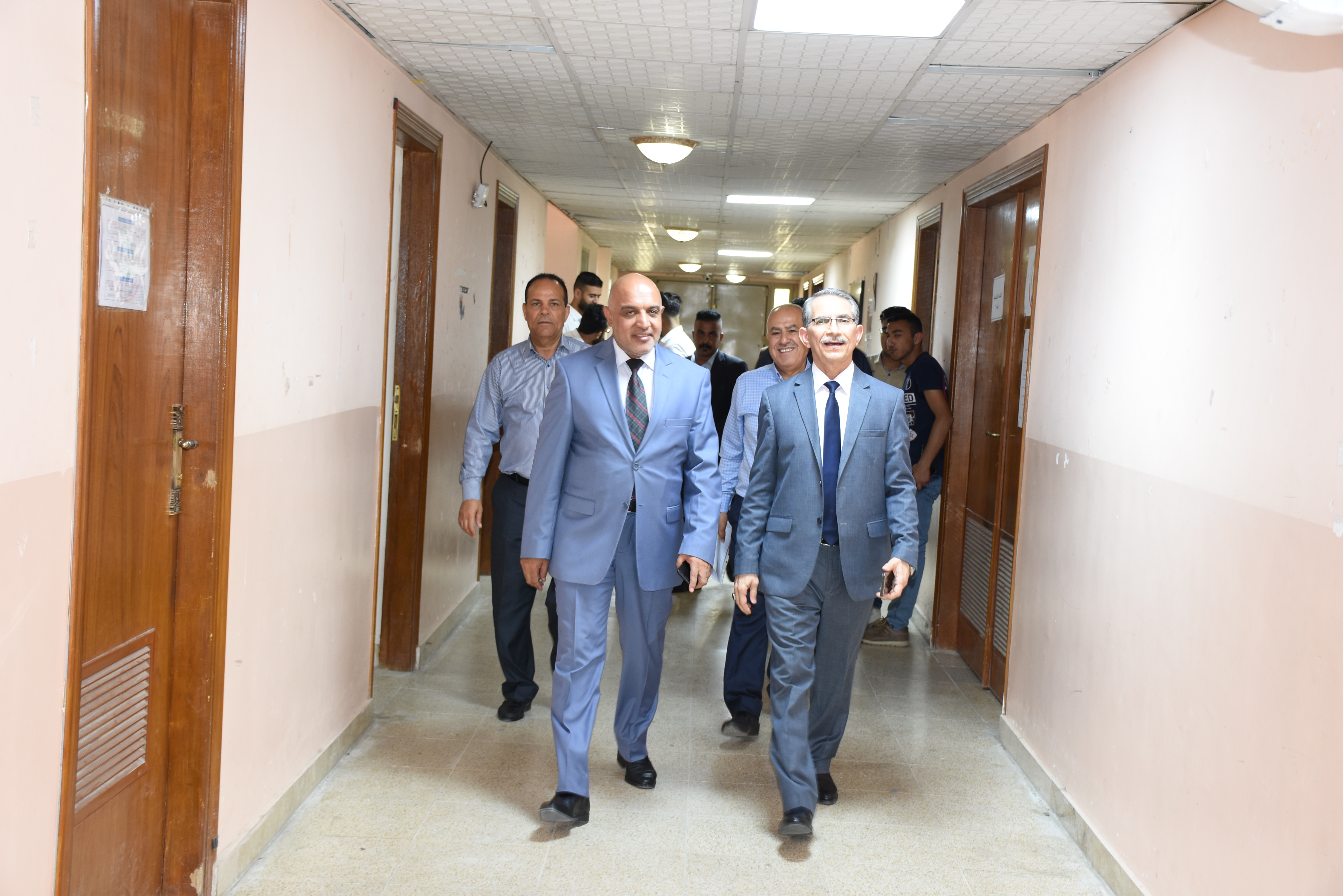 وكان في أستقباله السيد عميد الكلية (أ.د.محمد عبد عطية السراج) ومعاونه العلمي والاداري .