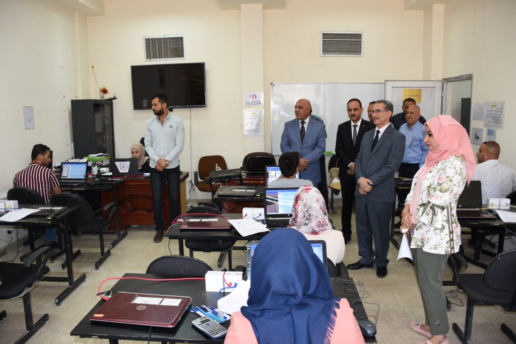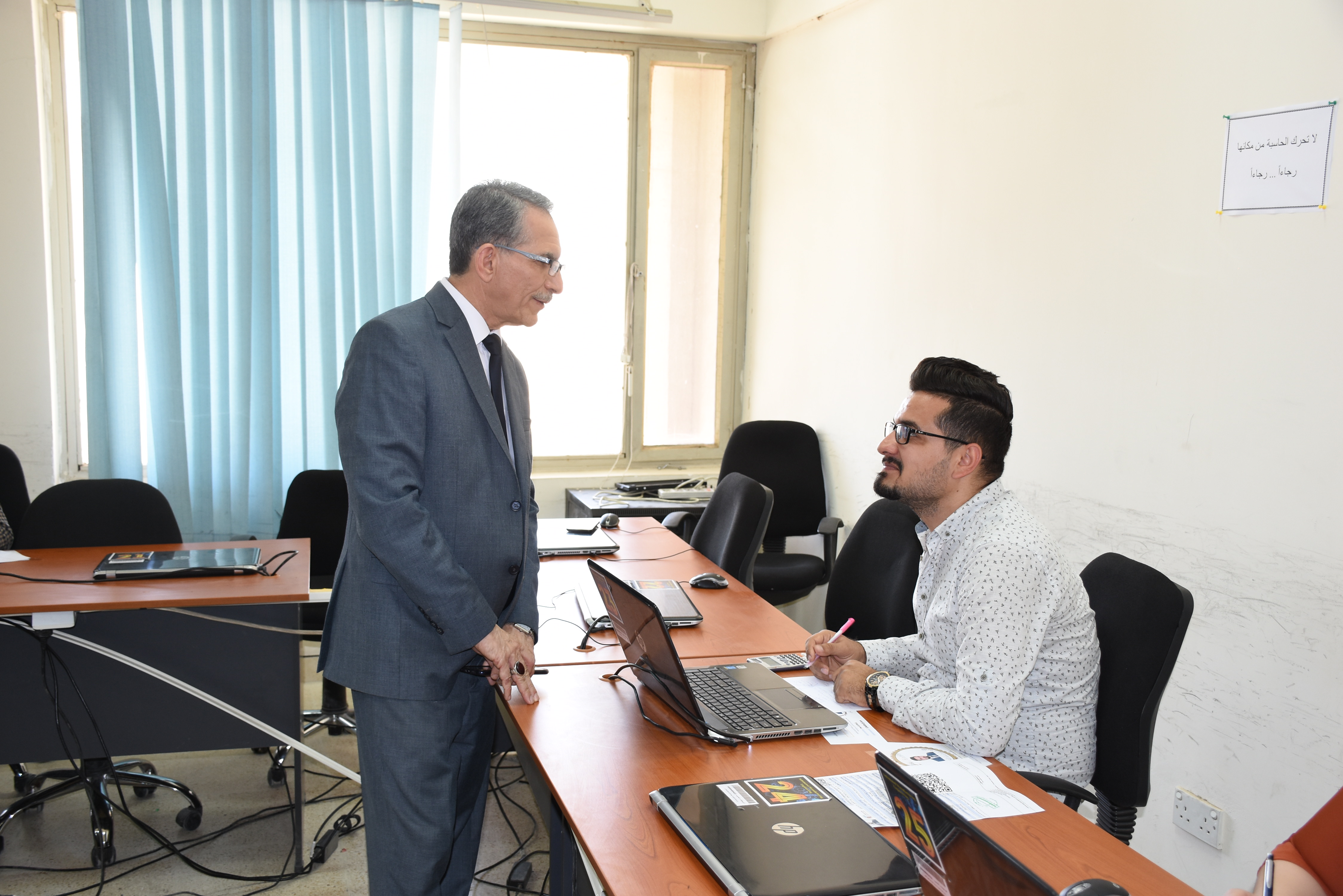 وفي بداية الزيارة أطلع على أختبارالامتحان التنافسي الالكتروني / في الجامعات العراقية عامة وفي كلية الهندسة الخوارزمي تمت المباشرة بالامتحان في أقسام ( هندسة الميكاترونكس وقسم هندسة المعلومات والاتصالات وقسم هندسة التصنيع المؤتمت وقسم الهندسة الكيميائية الاحيائية ) ولجنة متخصصة بهذا الشأن ونخبة من رؤساء وأساتذة الأقسام العلمية .