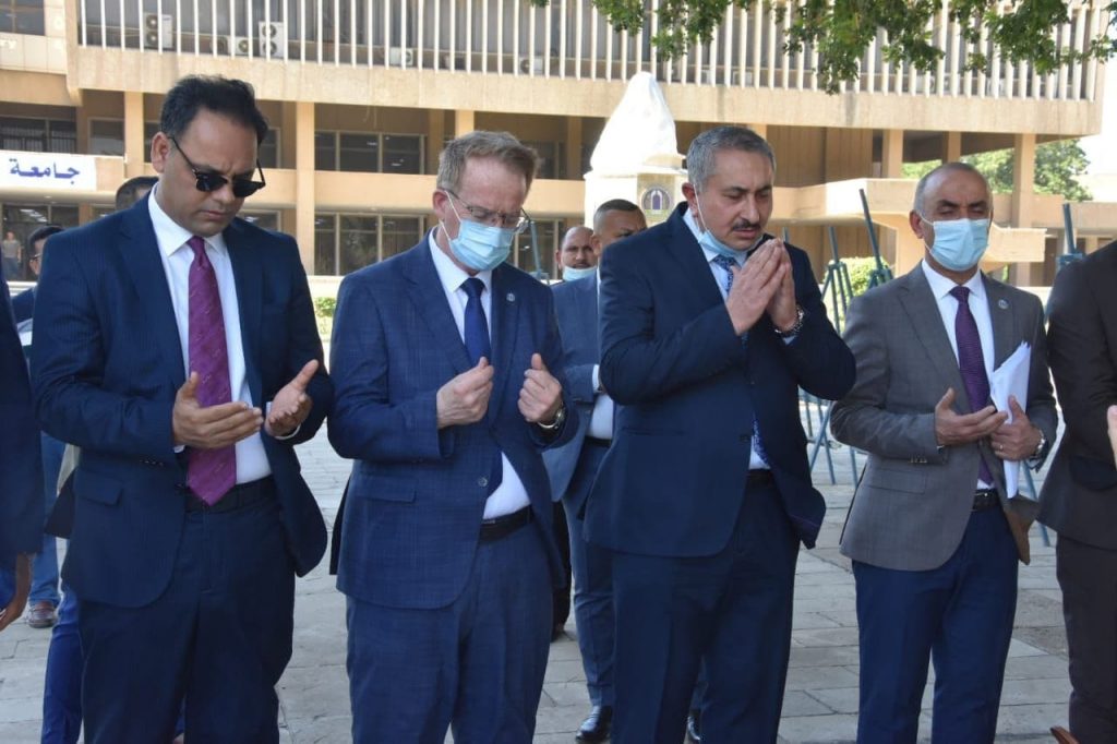 نظمت رئاسةجامعة بغداد/ مجلس الجامعة وقفة تابينية حدادآ على أرواح شهداء مستشفى الحسين في محافظة ذي قار تضمنت قراءة سورة الفاتحة على أرواح شهداء الفاجعة الأليمة .بعدها قدم السيد رئيس الجامعة التعازي الى ذوي الشهداء سائل الباري عز وجل ان يتغمدهم بواسع رحمته وقدكان ضمن الوقفة التأبينية مساعدي رئيس الجامعة للشؤون العلمية والإدارية والسيد عميد كلية الهندسة الخوارزمي أ. د ماهر يحيى سلوم العباسي المحترم وعمداء كليات الجامعة كافة رحم الله شهدائنا والشفاء العاجل للمصابين وحفظ الله بلدنا من كل سوء