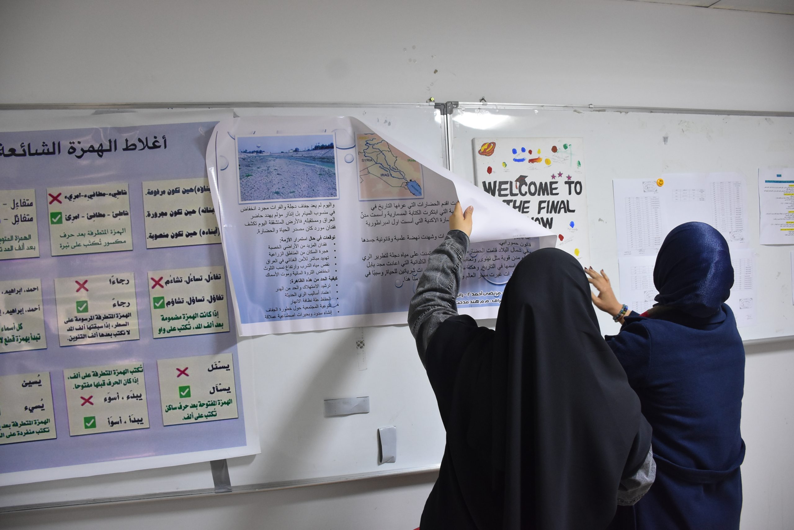 وتضمنت الحملة محاور علمية وتوعوية مهمة، شملت تسليط الضوء على ظاهرة جفاف الأنهار من خلال بيان أسبابها وآثارها وسبل الحد من مخاطرها، إلى جانب توضيح أهمية إعادة التدوير ودورها الفاعل في تقليل التلوث والحفاظ على البيئة، فضلاً عن معالجة أبرز الأخطاء الإملائية الشائعة في كتابة الهمزة مع تقديم أمثلة تطبيقية تصحيحية.
