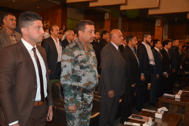 وأناب السيد رئيس الجامعة الأستاذ الدكتور علاء عبد الحسين عبد الرسول لحضور هذا المهرجان السيد عميد كلية الهندسة الخوارزمي الأستاذ المساعد الدكتور محمد السراج، وألقى السيد السراج كلمة بهذه المناسبة رحب فيها بالسادة الحضور وسلط الضوء فيها على دور بطل الإسلام الإمام الحسين (ع) في إرساء دعائم الحق ضد الباطل وإعلاء شأن الإسلام والمسلمين في كل زمان ومكان وأوضح الدكتور السراج: “ونحن نعيش هذه الأيام الخالدة والأليمة على نفوسنا جميعاً وهي ذكرى استشهاد الأمام الحسين(ع)، علينا استلهام الدروس والعبر من هذه المناسبة الخالدة وأن نوحد جهودنا جميعاً لخدمة بلدنا العزيز لكي يعم التقدم والازدهار فيه”.